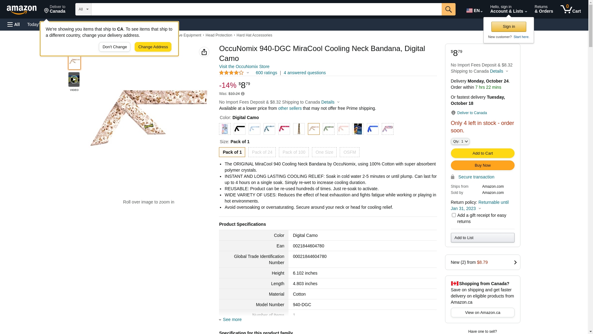 OccuNomix 940-DGC MiraCool Cooling Neck Bandana, Digital Camo