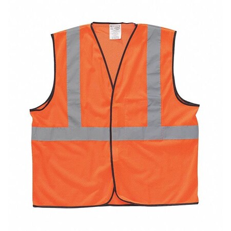 ' High Visibility Vest, ANSI Class 2, Vest Size 4XL, Color Orange/Red, Fits Chest Size 56 In. to 62 In., Gender Unisex, Stripe Color Silver, Vest Material Polyester Mesh, Vest Closure Type Hook-and-Loop, ATPV Rating Unrated, Hazard Risk Category (HRC) 0, Vest Stripe Color Family Silver, Back Stripe Pattern U-Block, Vest Length 29 In., Number of Pockets (Inside) 1, Number of Pockets (Outside) 0, Number of Pockets with Closure 1, Features Mesh, Standards ANSI/ISEA 107-2015 Type R Class 2 '