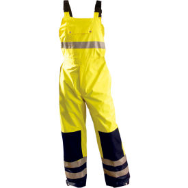 - OccuNomix Medium 48" Hi-Viz Yellow, Blue And Silver Premium PU Coated Polyester Breathable Rain Bib Pants With Side Snap Closure, 3M Scotchlite Reflective Stripe And Zip Roll-Away Hood