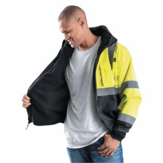 - Classic Class 3 Three-Way (3-in-1) Black Bottom Bomber Jacket, with 2" Silver Reflective Tape, Zipper Closure, and Convenient Roll-Away Hood