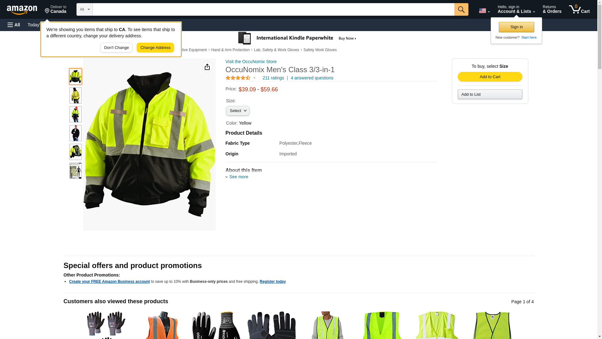 OccuNomix LUX-ETJBJR-BY3X Classic Three-Way Black Bottom Bomber Jacket, Class 3, ANSI Polyester, 3X-Large, Yellow