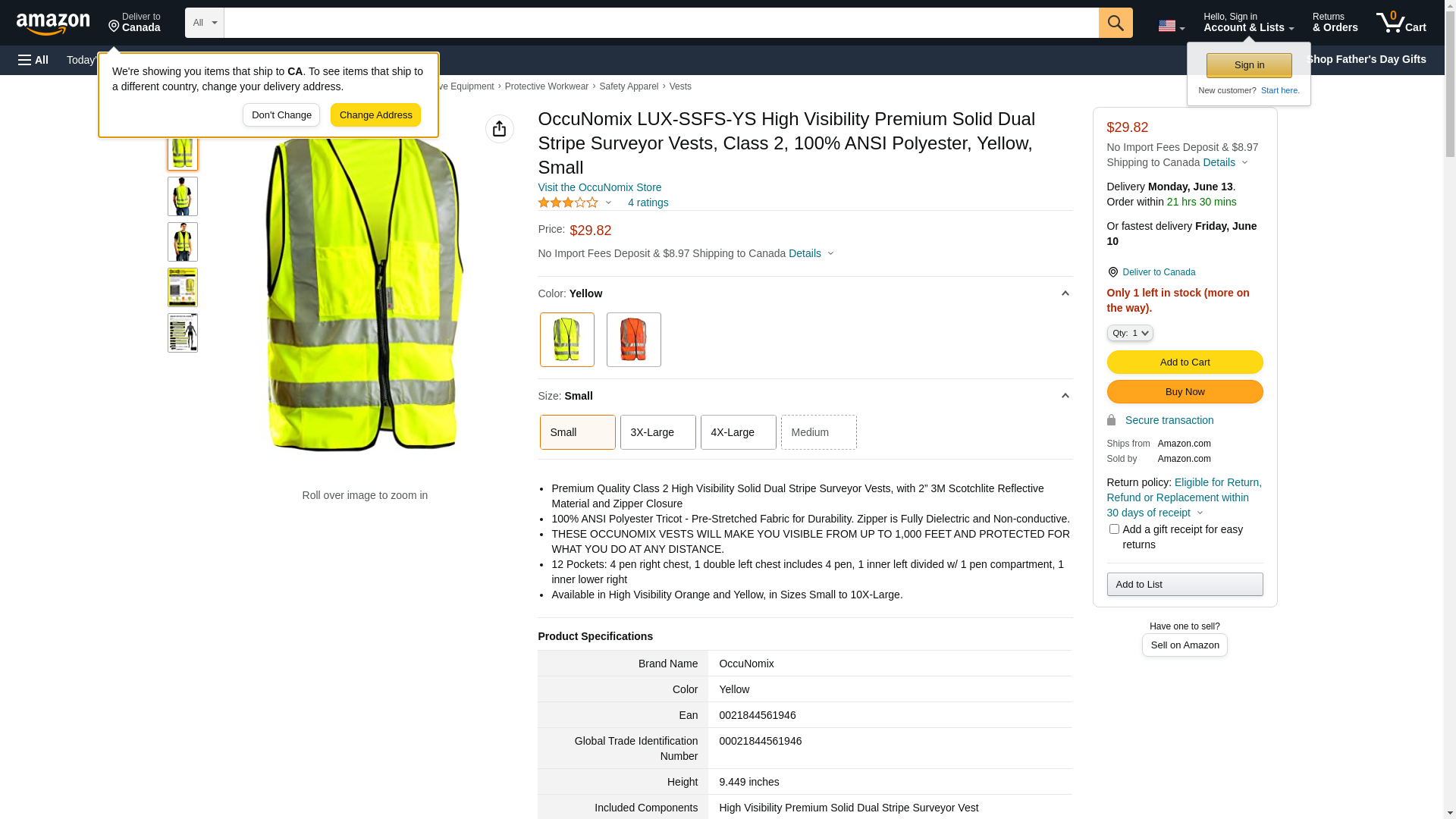 OccuNomix LUX-SSFS-YS High Visibility Premium Solid Dual Stripe Surveyor Vests, Class 2, 100% ANSI Polyester, Yellow, Small