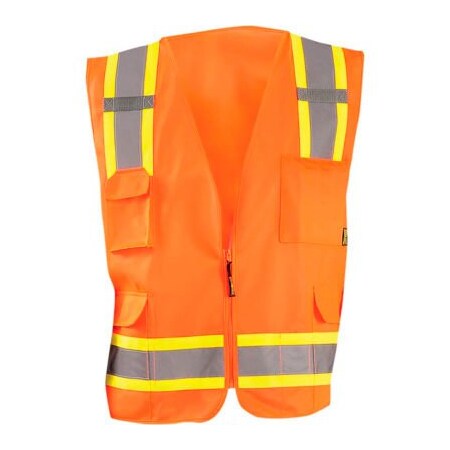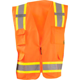 OccuNomix ECO-ATRANS-O2X High Visibility Value Solid Two-Tone Zipper Surveyor Safety Vest, Class 2, 100% ANSI Polyester Tricot, 2X-Large, Orange