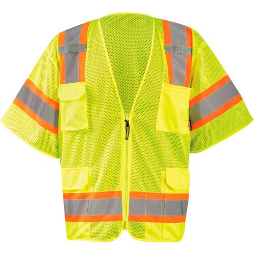 IndustrialSafety.com | Occunomix ECO-SIMZ32T-YL Class 3 Mesh Two Tone Surveyor Vest, Yellow, Size Large, 1/Each