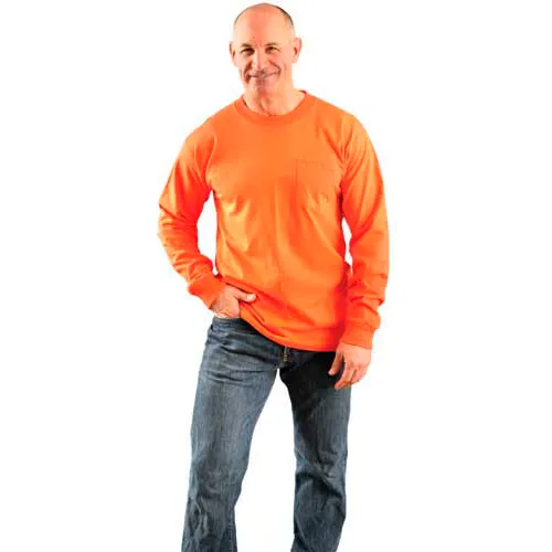 OccuNomix Classic Cotton Hi-Vis Long Sleeve T-Shirt W/ Pocket Orange, M, LUX-300LP-07M