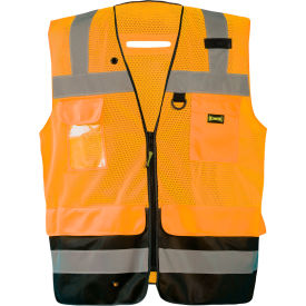 OccuNomix LUX-LTGCSBK-OM Black Bottom Mesh Surveyor Vest with Zipper Closure, D-Ring, 7 Pockets & ID Pocket, Class 2, 100% ANSI Polyester, Medium, Orange (High Visibility)