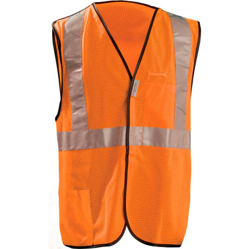 Breakaway High Visibility Vest, ANSI Class 2, Vest Size 3XL, Traffic Safety Vest Color Orange/Red, Fits Chest Size 52 In. to 54 In., Gender Unisex, Stripe Color Silver, Vest Material Modacrylic, Vest Closure Type Hook-and-Loop, ATPV Rating Not Rated, Hazard Risk Category (HRC) 0, Vest Stripe Color Family Silver, Back Stripe Pattern U-Block, Vest Length 28 in, Number of Pockets (Inside) 1, Number of Pockets (Outside) 2, Number of Pockets with Closure 0