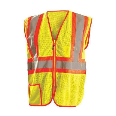 OCCSSCLC2Z-Y2X Features: -SIZE 2X, YELLOW. -UNSPC CODE: 46181500. -Clothing Type: Vest. -Clothing Size : 2X. Product Type: -Mesh. Product Type: -Reflective. Color: -Yellow. Color: -Orange. Type I: -Safety Vest. Reflective Tape: -Yes. High Visibility: -Yes. Size: -2XL. ANSI: -Class 2. Mesh: -Yes. Closure Type: -Zipper. Quantity: -Single. Generic Specifications: -LUX-SSCLC2Z is a two-tone mesh ANSI Class 2 safety vest. The Hi-Viz Yellow material sports Hi-Viz Orange trim and edging and striping around middle and over shoulders. 2'''' wide reflective silver stripes are in the center of the orange striping. 2 pockets (one inside, one outside) and a zipper closure..