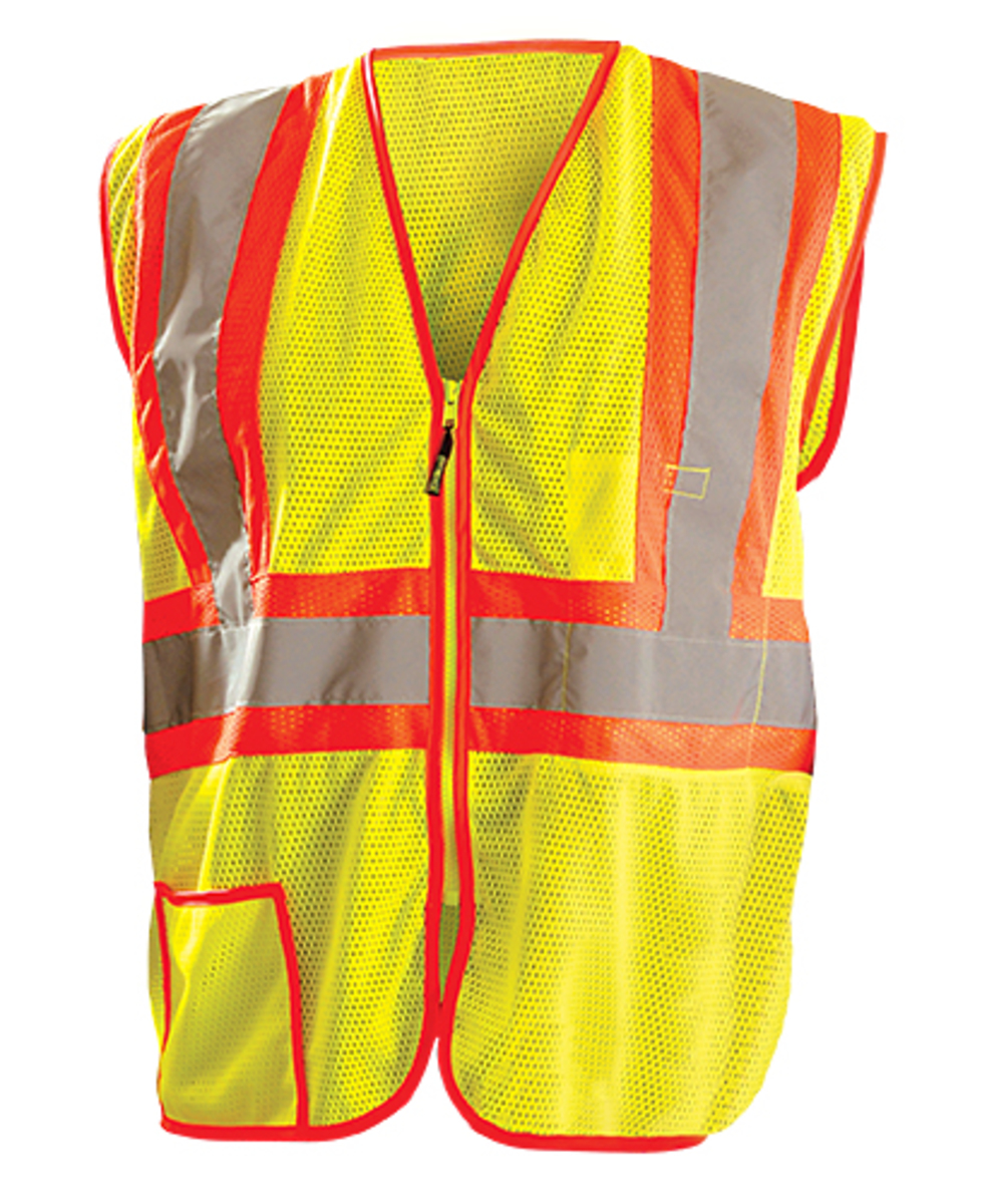 - OccuNomix 2X Hi-Viz Yellow Classic Light Weight Polyester Mesh Class 2 Two-Tone Vest With Front Zipper Closure And 2" Silver Reflective Tape Backed by Contrasting Trim And 2 Pockets