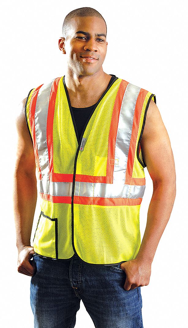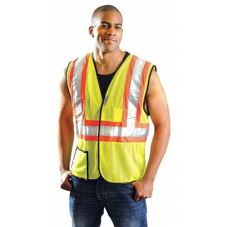 OccuNomix 2X Hi-Viz Yellow OccuLux(R) Lightweight Polyester And Mesh Class 2 Two-Tone Vest With Front Hook And Loop Closure, 2" 3M Scotchlite Reflective Tape Striping And 2 Pockets