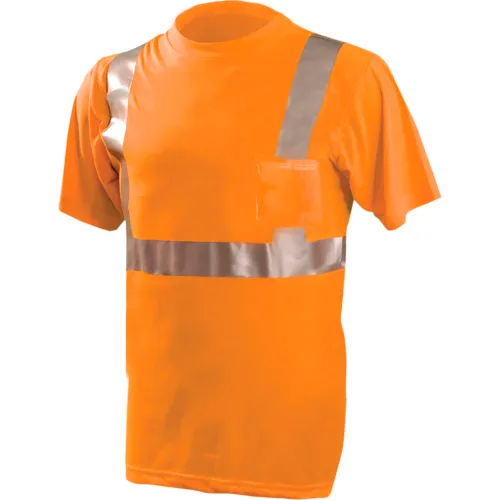OccuNomix LUX-SSETP2-O2X Classic Standard Short Sleeve Wicking T-Shirt with Pocket, Class 2, 100% ANSI Wicking Spun Polyester, 2X-Large, Orange (High Visibility)