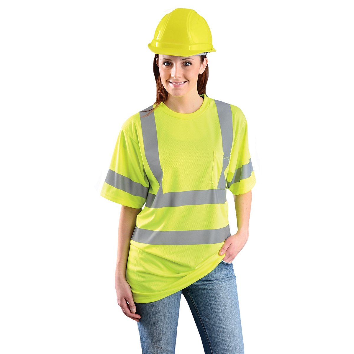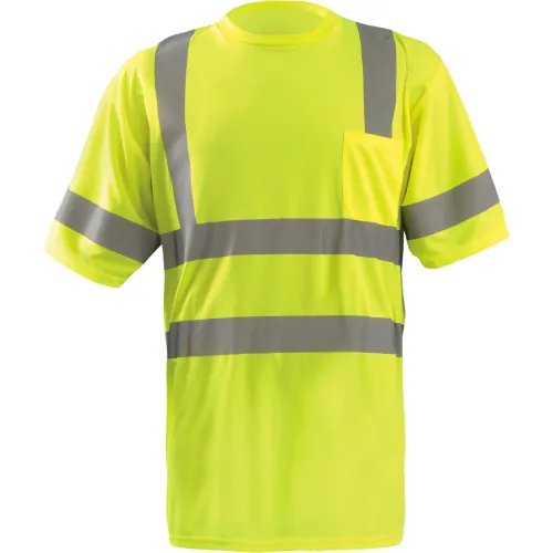 | Feature | Price For: Each Standards: ANSI/ISEA 107-2010 Item: T-Shirt Number of Outside Pockets: 1 Fits Chest Size: 56" Fabric Weight: 3.8 oz. Size: 3XL Material: Wicking Birdseye Color: Yellow Gender: Men\'s Sleeve Length: 10-1/2" Length: 32" ANSI Class: 3 Country of Origin (subject to change): China |