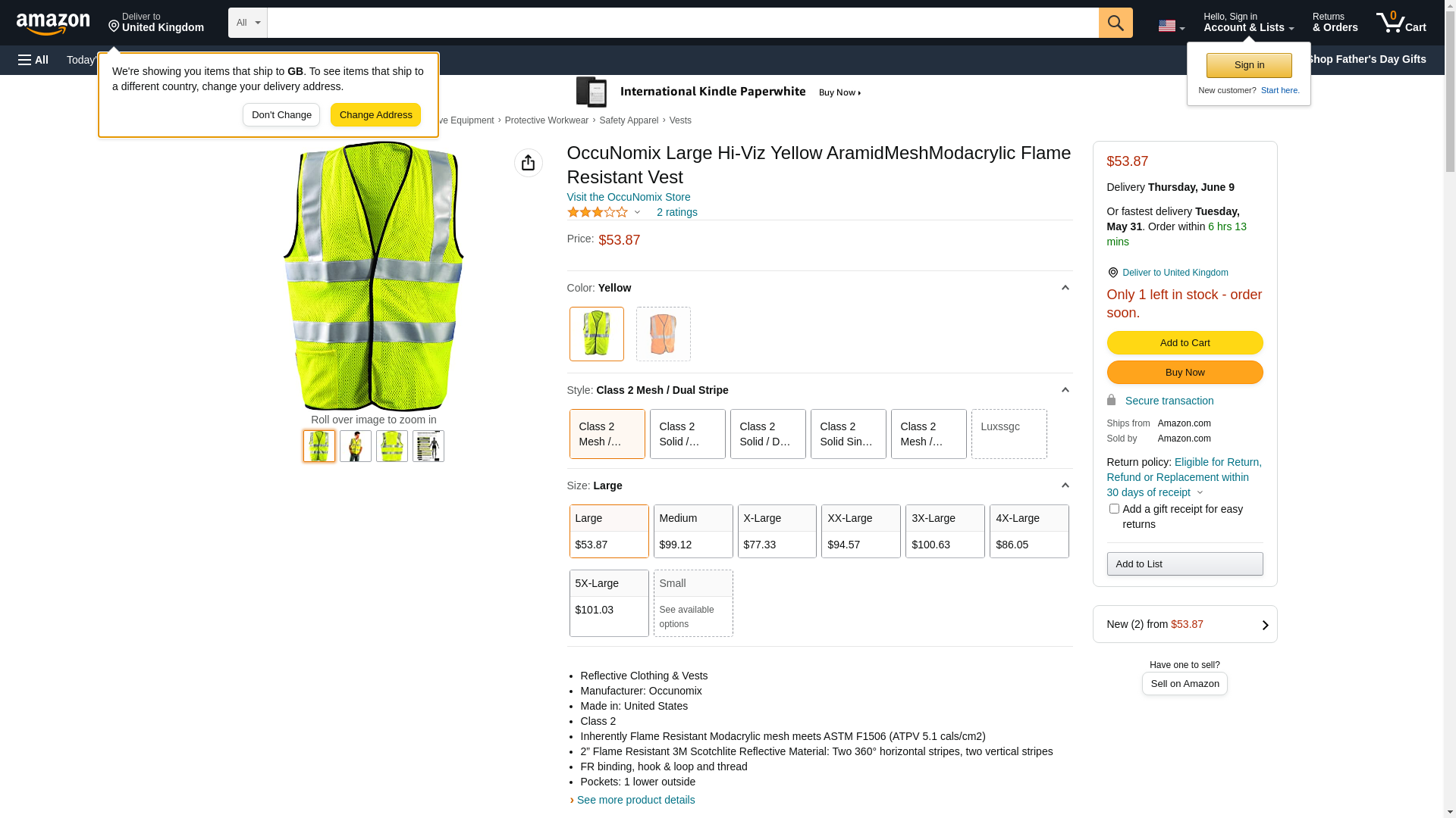 OccuNomix Large Hi-Viz Yellow AramidMeshModacrylic Flame Resistant Vest