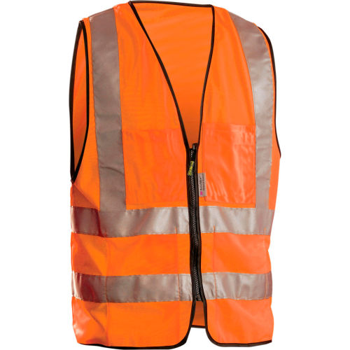 ' High Visibility Vest, ANSI Class 2, Vest Size 2XL, Color Orange/Red, Fits Chest Size 46 In. to 49 In., Gender Unisex, Stripe Color Silver, Vest Material Polyester Mesh, Vest Closure Type Zipper, ATPV Rating Unrated, Hazard Risk Category (HRC) 0, Vest Stripe Color Family Orange/Red and Silver, Back Stripe Pattern U-Block with Double Horizontal Base Icon, Vest Length 28 In., Number of Pockets (Inside) 9, Number of Pockets (Outside) 3, Number of Pockets with Closure 0 '