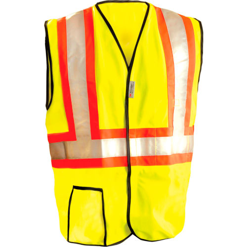 OccuNomix LUX-SSG2T-Y5X High Visibility Premium Solid Two-Tone Safety Vest, Class 2, 100% ANSI Polyester Tricot w/ 2” 3M Scotchlite Reflective Material & Contrasting Trim, Yellow, 5X-Large