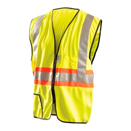 <b>Premium Solid Two-Tone Expandable Zip Vest, Hi-Vis Yellow, 5XL</b><br><br><b>Features:</b><br><ul style="margin-top:0px; padding-top: 5px; padding-bottom: 5px;"><li>Add up to two sizes with adjustable plastic side snaps. </li><li>Class 2</li><li> 2" 3M™ Scotchlite™ Reflective Material backed by ANSI compliant trim, One 360 horizontal stripe, two vertical stripes </li><li>100% ANSI Polyester Tricot</li><li>Pockets: 1 outside lower, 1 left inside chest</li><li>Zipper closure</li></ul>