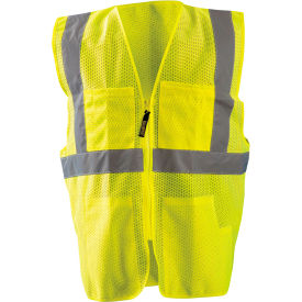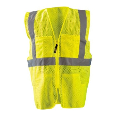 <b>Classic Mesh Surveyor Vest, Hi-Vis Yellow, S/M</b><br><br><b>Features:</b><br><ul style="margin-top:0px; padding-top: 5px; padding-bottom: 5px;"><li>Class 2</li><li>2" Silver reflective tape: One 360 horizontal stripe, two vertical stripes</li><li>100% ANSI Polyester Mesh</li><li>Pockets: 2 inside lower w/ pen compartment, 4 pen on outside right chest, 1 outside left double w/ 4 pen compartments</li><li>Zipper closure</li></ul>