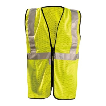 <b>Premium Mesh Standard Vest w/Zipper, Hi-Vis Yellow, L</b><br><br><b>Features:</b><br><ul style="margin-top:0px; padding-top: 5px; padding-bottom: 5px;"><li>Class 2</li><li>2" 3M™ Scotchlite™ Reflective Material: One 360 horizontal stripe, two vertical stripes</li><li>100% ANSI Polyester Mesh</li><li>Zipper closure</li></ul>