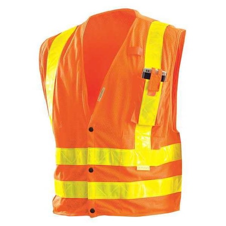 Occunomix LUX-SSLDMS-OM Class 2 High Visibility Premium Mesh Gloss Snap Vest, Medium, Orange