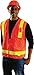 OccuLux L'Orange Surveyors Vest w/ 13 pockets & zipper, 11 outside pockets including a radio pocket with mike tab and 2 large inside pockets. Design includes 2'' wide 3M Scotchlite glossy microprism reflective material -- One 360° horizontal reflective stripe plus two vertical reflective stripes to increase the retro-reflective effect and visibility at night, dawn and dusk, especially when wet. Solid breathable polyester in front and open mesh back.