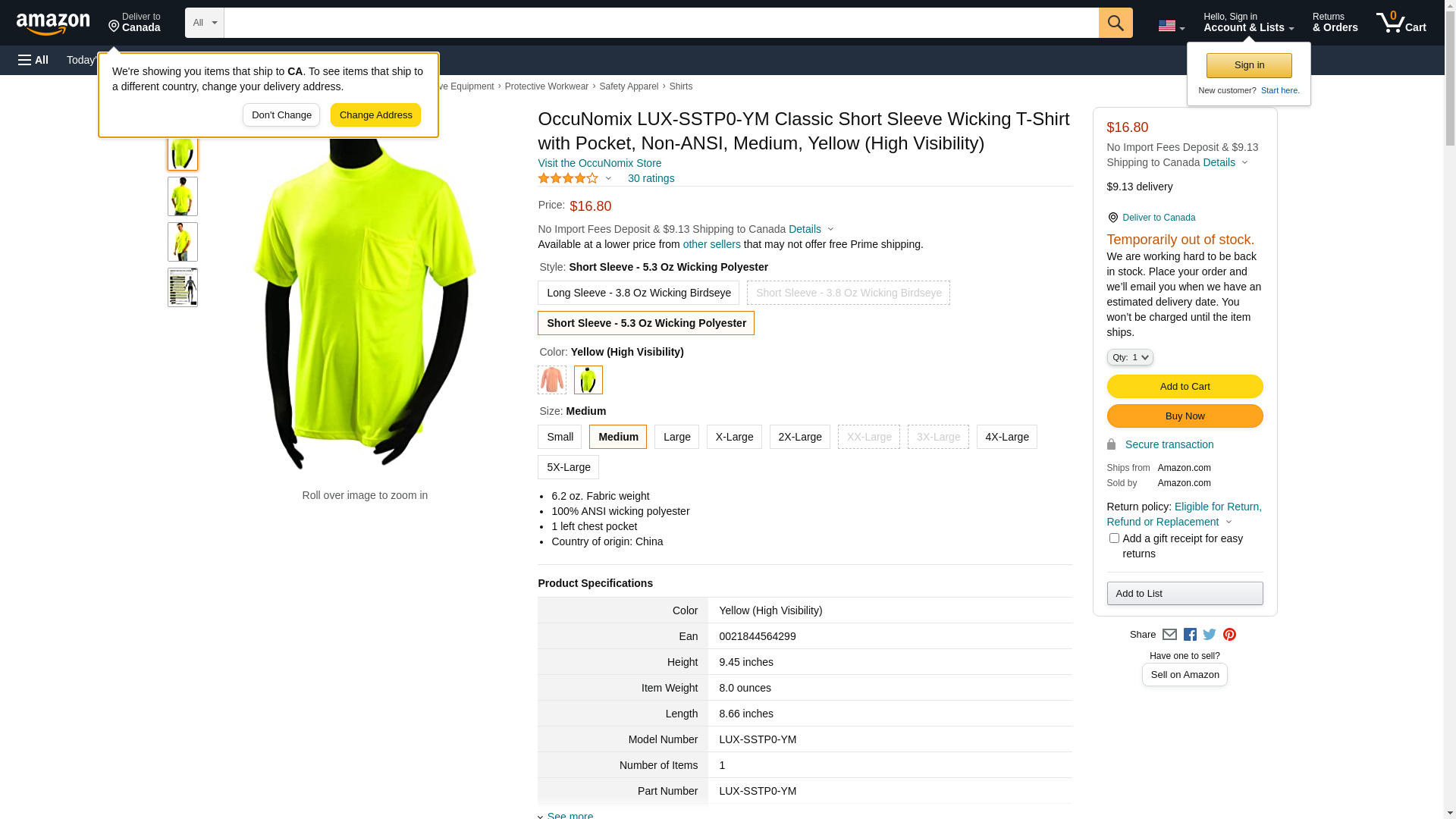 OccuNomix LUX-SSTP0-YM Classic Short Sleeve Wicking T-Shirt with Pocket, Non-ANSI, Medium, Yellow (High Visibility)