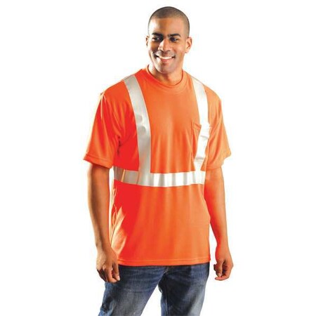 OccuNomix LUX-SSTP2-O2X Premium Short Sleeve Wicking T-Shirt with Pocket, Class 2, 100% ANSI Wicking Polyester with 2” 3M Scotchlite Reflective Material, 2X-Large, Orange (High Visibility)