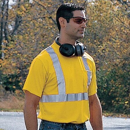 OccuNomix LUX-SSTP2-Y3X Premium Short Sleeve Wicking T-Shirt with Pocket, Class 2, 100% ANSI Wicking Polyester with 2” 3M Scotchlite Reflective Material, 3X-Large, Yellow (High Visibility)