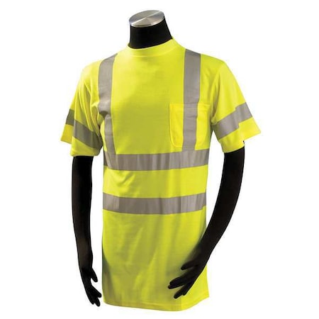 OccuNomix LUX-SSTP3-YL Premium Dual Stripe Short Sleeve Wicking T-Shirt with Pocket, Class 3, 100% ANSI Wicking Polyester with 2” 3M Scotchlite Reflective Material, Large, Yellow (High Visibility)