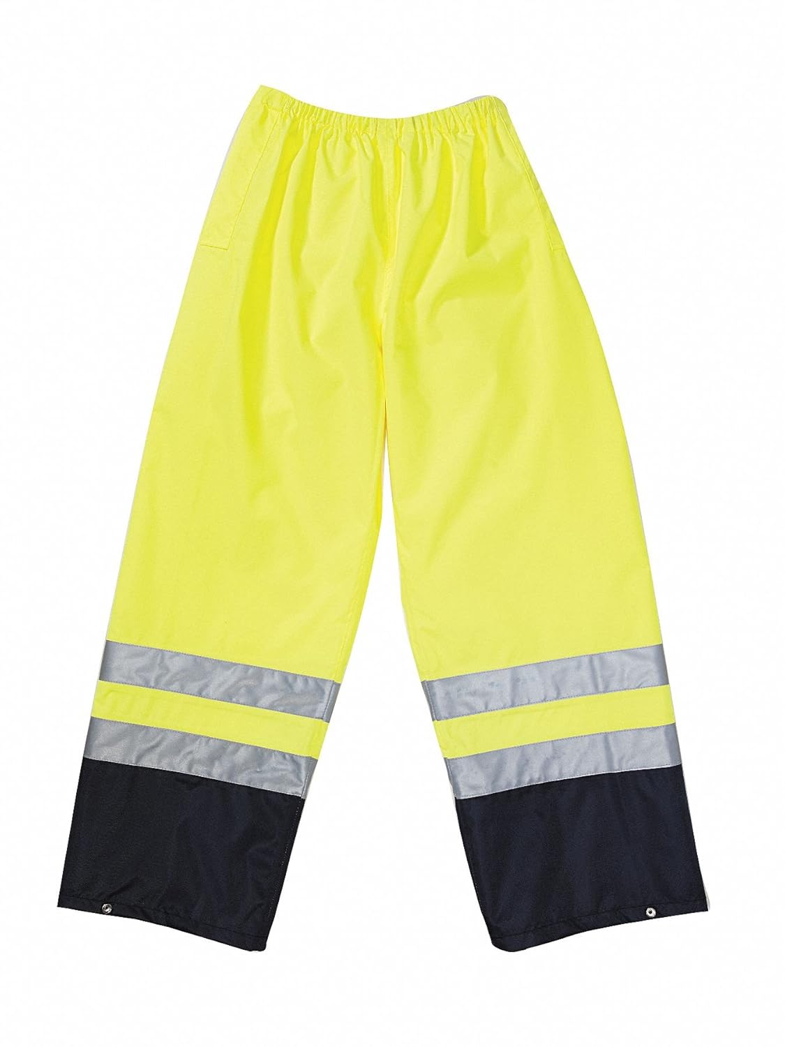 Rain Pants, Material Polyester/Polyurethane, Gender Men's, Size S, Color Yellow, Inseam 27 1/2 in, Maximum Waist Size 34 in, High-Visibility Yes, ANSI Class E, Number of Outside Pockets 0, Includes Lining Yes, Lining Material Polyester, Ankle Type Snap, Fabric Weight 3.53 oz, Thickness 5.51 mil, Style Rain Pants, Fly Closure Type Drawstring, Elastic, Insulated for Cold Conditions Yes, Waist Closure Drawstring, Reflective Stripe Border Type None, Standards ANSI/ISEA 107-2010 Class E
