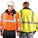 Our high visibility jackets are a bomber style that meets the diverse weather,visibility and comfort needs of workersOur three layer,convertible high visibility jacket comes with a multitude of options and can be worn five different waysThe outer jacket is made of PVC coated polyester plus 3M Scotchlite reflective tape and exceeds Class 3 standards,,This high visibility jackets have many features including a snap on,hideaway hood,flip up collar for wind blocking,zipper and snap front,a radio pocket,two outside hand pockets,and,to hide dirt,dark cuffs,collar and waistbandElasticized cuffs and waistband keep cold air out and warm body heat inPVC coated polyester meets ASTM F 1671 against bloodborne pathogen penetrationNylon lining with heavy poly fleece and outer sleeves are removableThe high visibility jackets are available in fluorescent orange and fluorescent yellow.