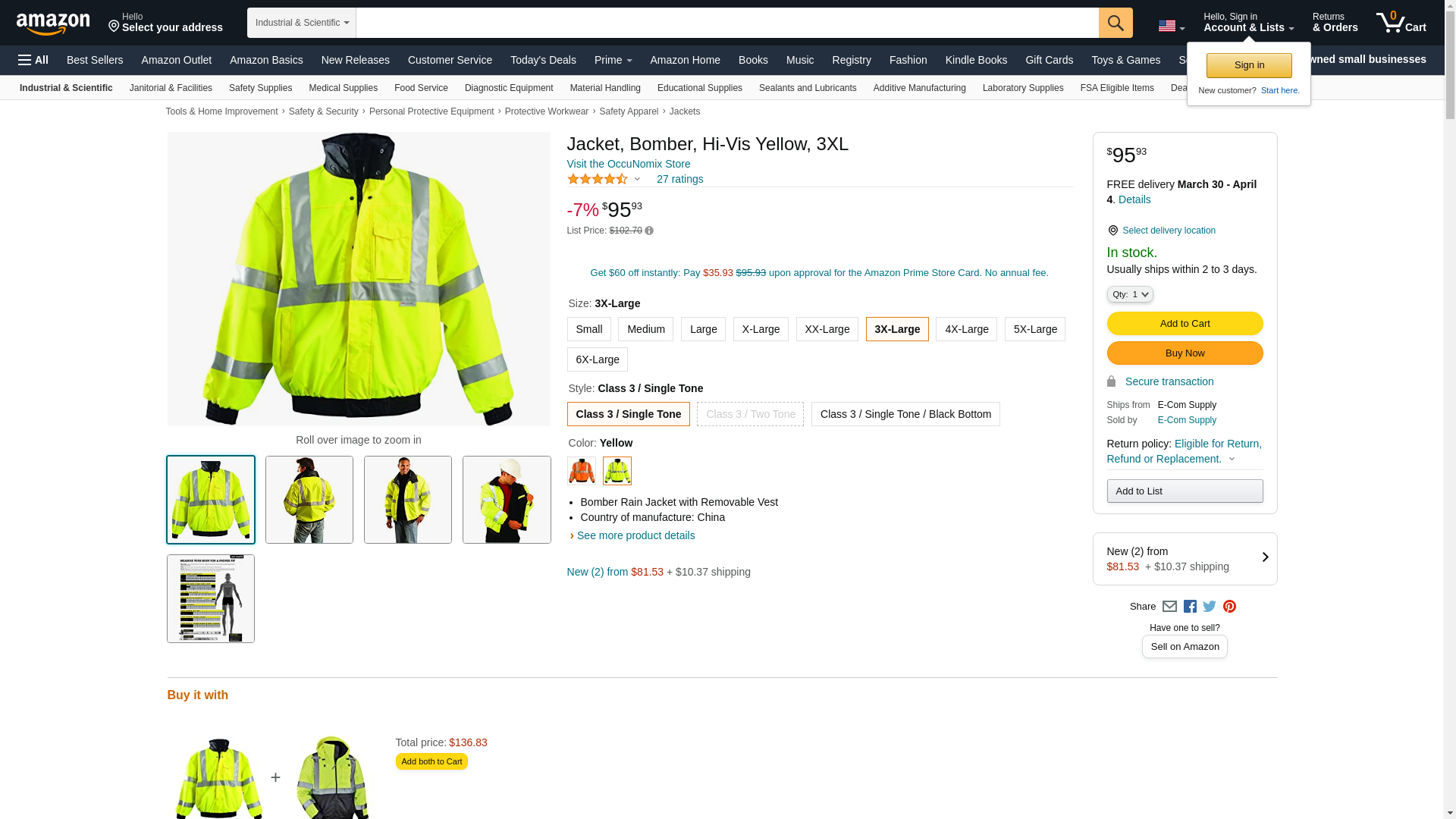 Jacket, Garment Type Jacket, Length Type Waist, Style Bomber Jacket, Back Stripe Pattern U, ANSI Class 3, ANSI Type R, Gender Men's, Front Closure Type Zipper with Storm Flap, Color Yellow, Size 3XL, Number of Outside Pockets 3, Includes Hood Yes, Hood Style Snap-On (Included), Maximum Chest Size 56 in, Material Polyester, Temperature Rating -2 Degrees to 46 Degrees F, Includes Removable Liner Yes, Reflective Stripe Border Type None, Garment Features None
