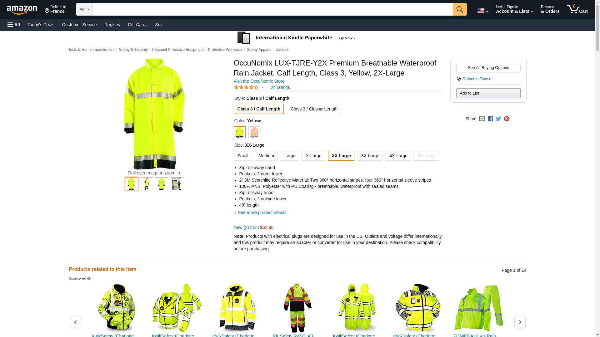 OccuNomix LUX-TJRE-Y2X Premium Breathable Waterproof Rain Jacket, Calf Length, Class 3, Yellow, 2X-Large