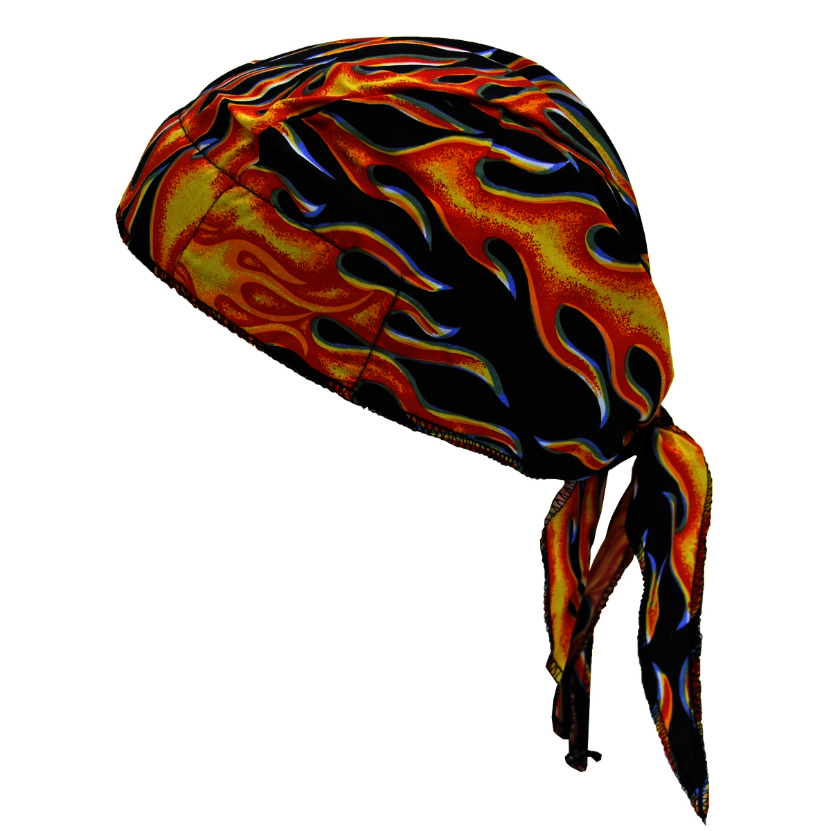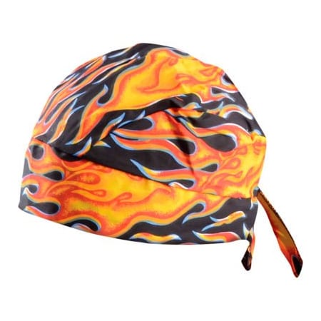 OccuNomix One Size Fits All Big Flames Tuff Nougies Deluxe Tie Hat (Doo Rag) With Elastic Rear Band