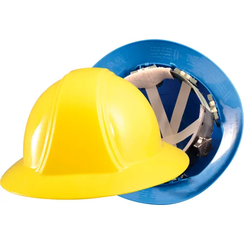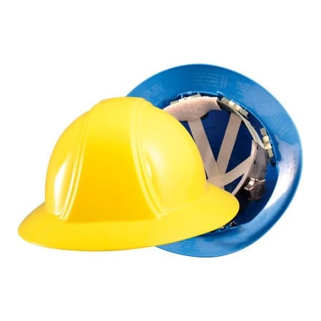 - Full Brim Hard Hats available in Blue, Orange, High Visibility Orange, Red, White, and Yellow