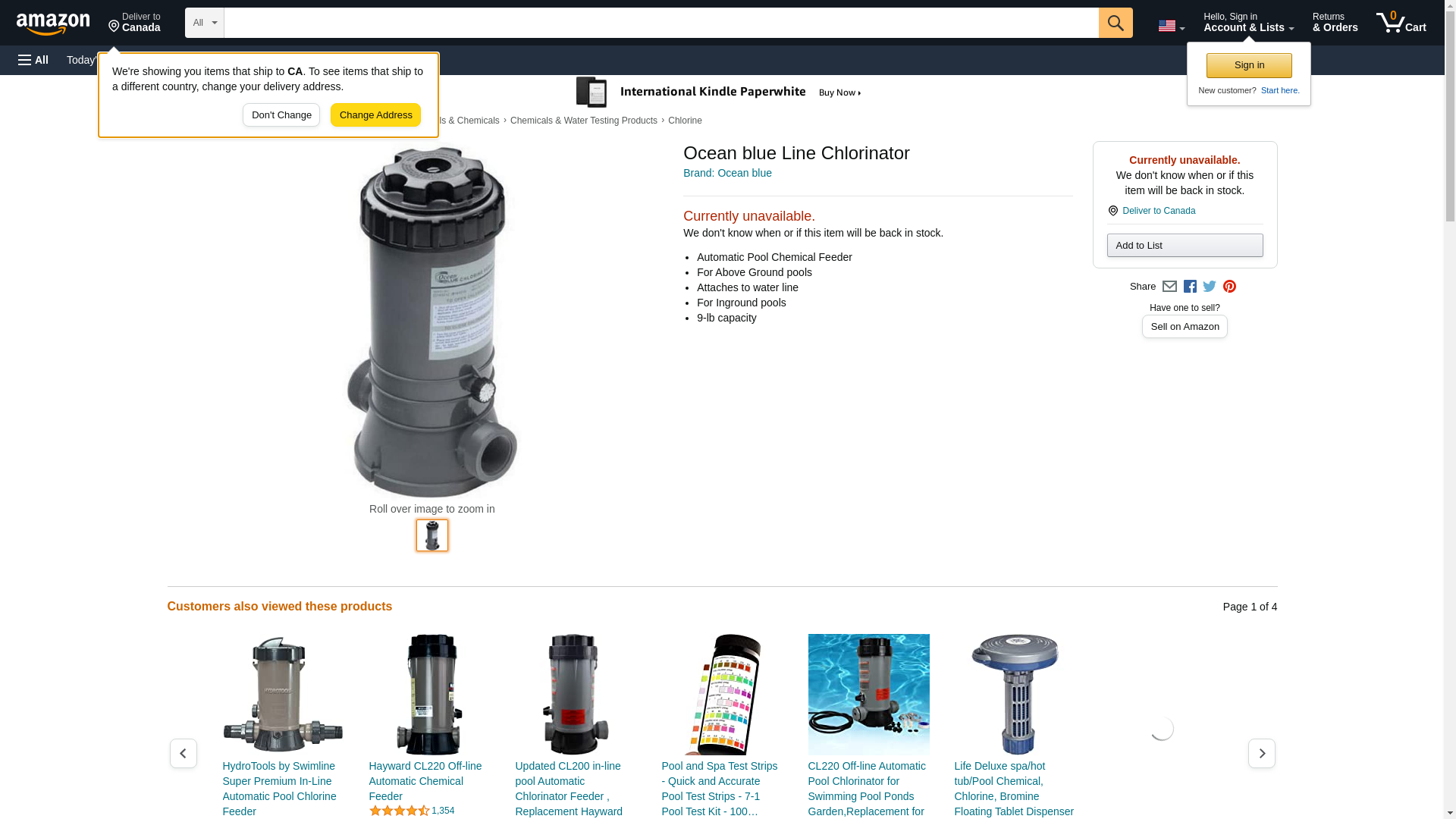 165010 Features: -Line chlorinator. -Holds up to 9 pounds of chlorine. -Easy way to chlorinate your pool. -Stop wasting time replacing tabs with a floating chlorinator. Chemical Type: -Chlorine.