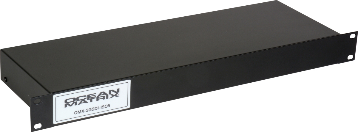 The Ocean Matrix OMX-3GSDI-ISO5 is a 5-Channel rackmount audio/video hum eliminator engineered to deliver hum-free, noise-free and jitter-free AV signals. A passive unit, it may also be used for sync signals and component applications. Each I/O channel features isolated BNC connections. Specifications: Supports HD-SDI or Analog Input Exceeds SMPTE 259M, 344M, 292M Specifications Allows Data Rate of 1.5 Gigabits/sec Frequency Response: 850MHz plus Dimensions: 1.75 x 6.06 x 19in Weight: 9.875 lb Item Includes: Rack Screws