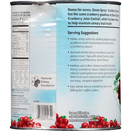 As an Amazon Associate, we earn from qualifying purchases. Ocean Spray Ocean Spray . 01435 Gallery Attributes Brand name, Manufacturer name, Manufacturer, Extra Product NameOcean Spray Attribute00, countryOfOriginUnited States AttributeKey00Country of Origin (subject to change) DimensionUnitinch GraingerSku161172 WeightUnitlbs atoms6 extendedLead8 extendedQty-2 jsonUrlData924526ffbdad25e5923b moq, multiple, tierMinQty11 MPN01435 qtyInStock0 qtyInStockOverrideDrop Ship SKUG6404932 tierPrice175.99 urlhttps://www.zoro.com/ocean-spray-ocean-spray-whole-cranberry-sauce-10lbs-can-pk6-01435/i/G6404932/ Distributor offers SellerSKUMOQIn stockMultiplePrices ZoroG6404932111 @ $75.99