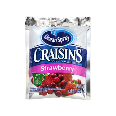 Ocean Spray Craisins Gluten Free Strawberry Dried Cranberries, 1.16 oz., 200/Pack (307-00076) | Quill.com