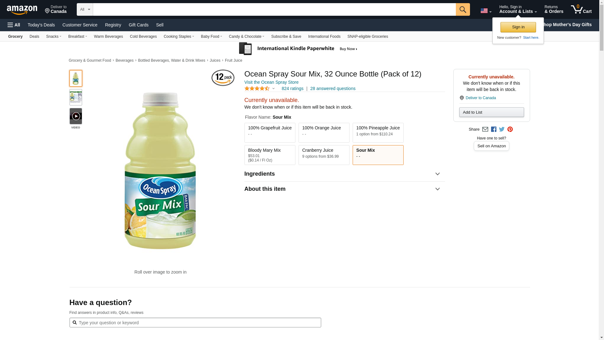 | Manufacturer | Ocean Spray |
