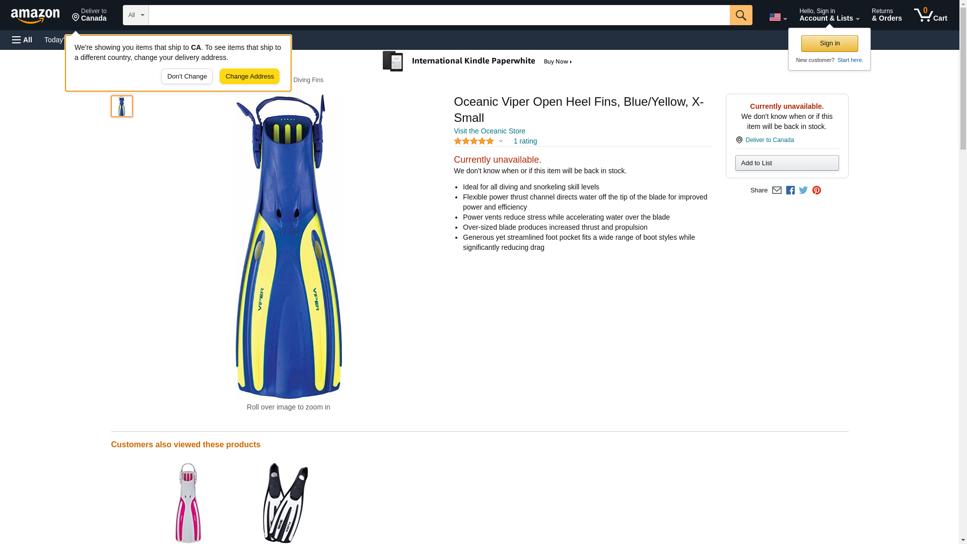 Oceanic Viper Open Heel Fins, Blue/Yellow, X-Small
