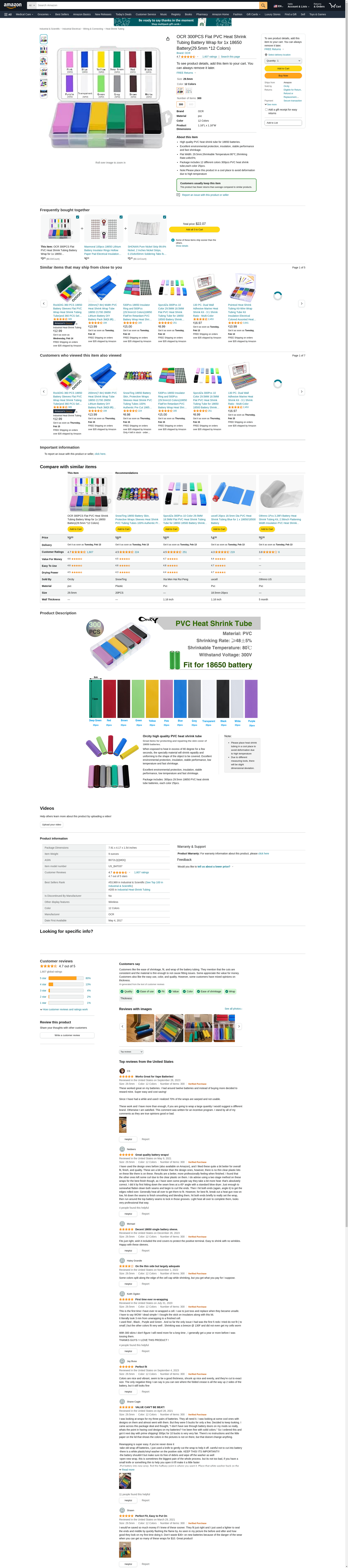 OCR Flat PVC Heat Shrink Tubing Battery Wrap for 1x 18650 Battery 300PCS(29.5mm12 Colors): Maxedbuy.com