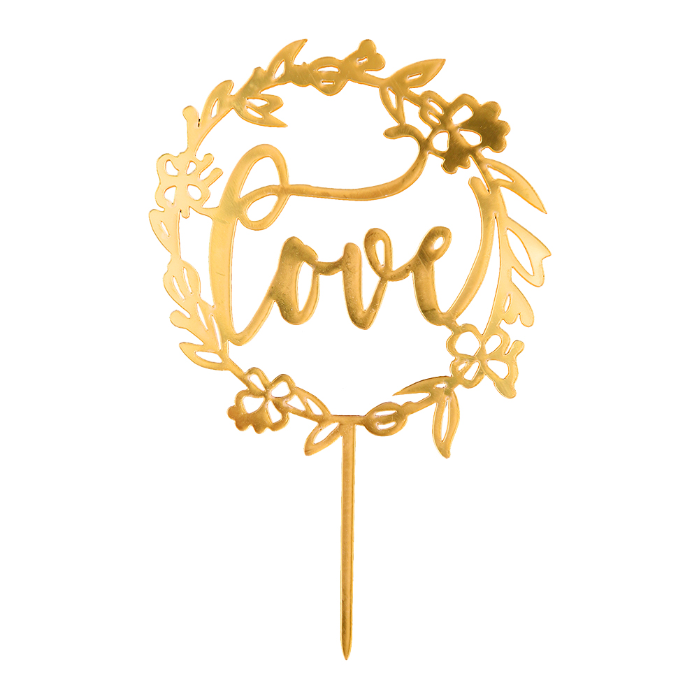 KnownManO'Creme Gold 'Love' Cake Topper Cake Toppers & Party Candles - BakeDeco.Com