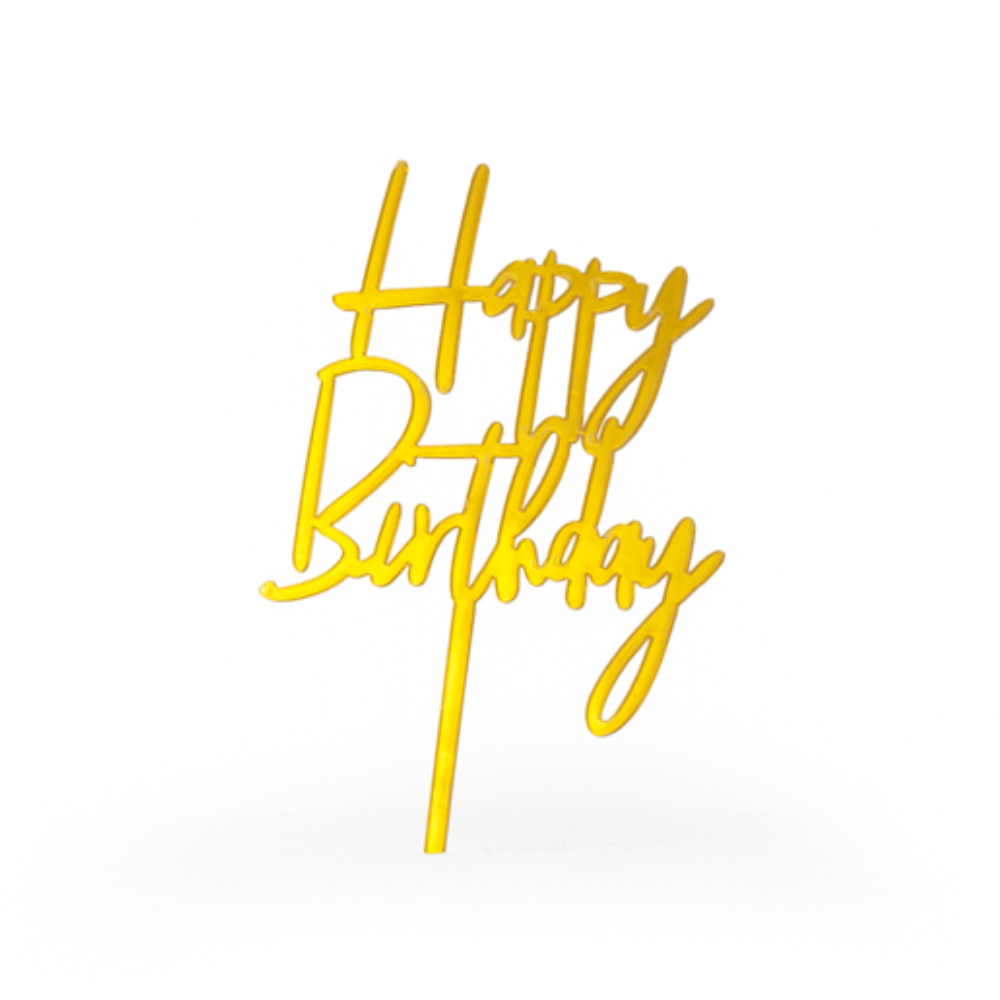 KnownManO'Creme Gold 'Happy Birthday' Cake Topper Cake Toppers & Party Candles - BakeDeco.Com