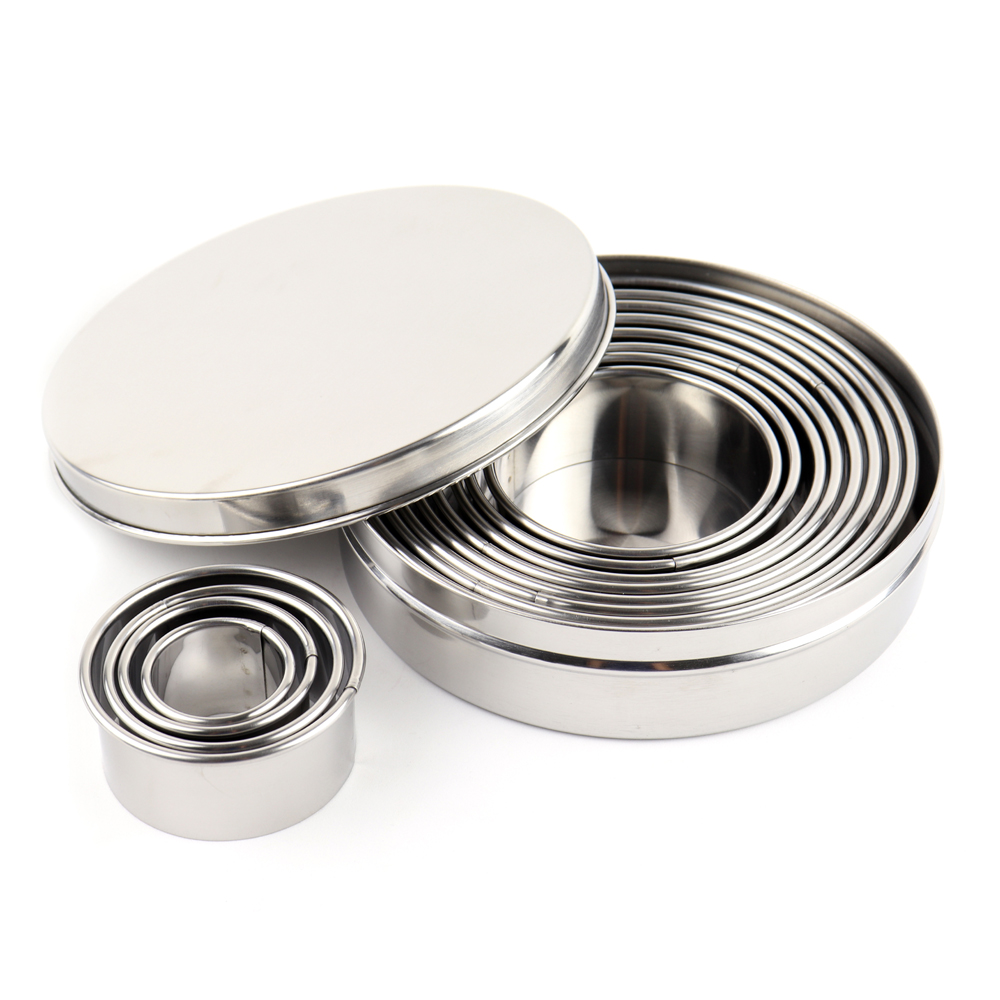 KnownManO'Creme Stainless Steel Round Cookie Cutters, Set of 12 Geometric Cookie Cutters - BakeDeco.Com