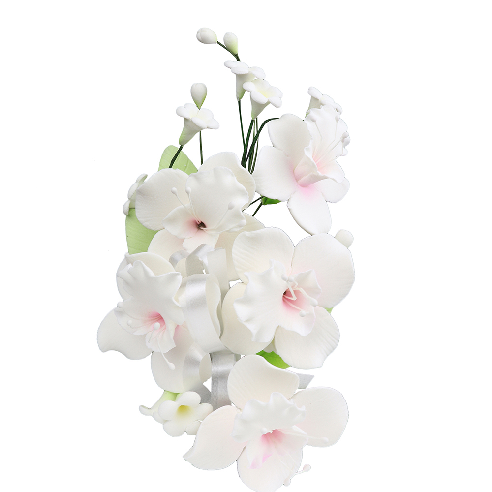 KnownManO'Creme White with Pink Orchid Spray Gumpaste Flower Gumpaste Flowers - BakeDeco.Com