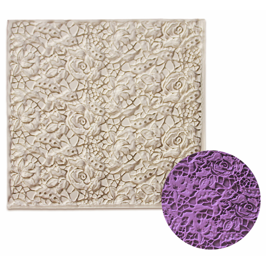 KnownManO'Creme Silicone Fondant Impression Mold, Rose Lace Fondant Impression Mats - BakeDeco.Com
