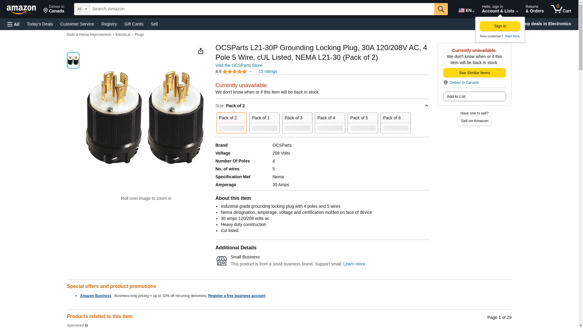 OCSParts L21-30P Grounding Locking Plug, 30A 120/208V AC, 4 Pole 5 Wire, cUL Listed, NEMA L21-30 (Pack of 2)