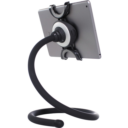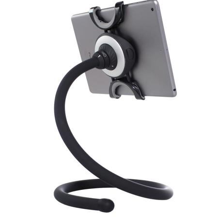 - ADAPTABLE: Flexible 36” (90cm) steel and silicone stand can be used as a height adjustable desk stand or you can tuck, wedge or wrap the tail to get even more options in bed, couch or plane. Curls up into a 10" diameter circle.
