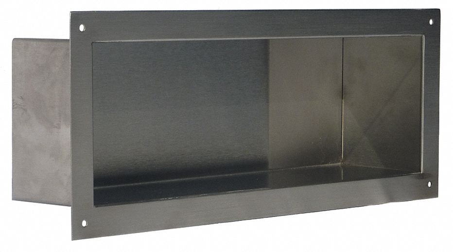 Security Shelf, Number of Shelves 1, Finish Satin, Overall Length 18 In., Overall Height 7 In., Overall Depth 4 In., Material 304 Stainless Steel, Mounting Type Recessed Mount, Features Antiligature