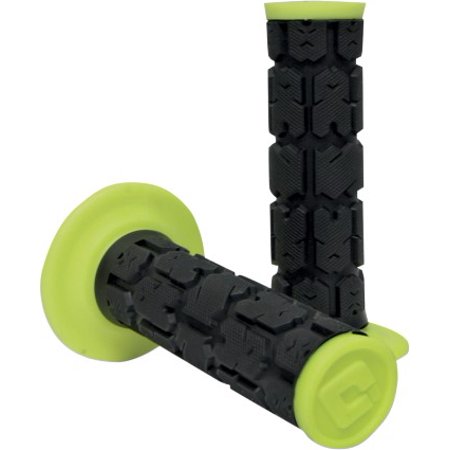 Popular Rogue Pattern features large raised pads to absorb vibration and increase comfort Dual-ply construction provides a soft, tacky outer layer with an inner material for improved bar adhesion Harder material ends also protect from "grip blowout" Deep grooved channels make it nearly impossible for mud and dirt to stick Larger diameter makes it ideal for riders with larger hands and those looking for increased padding and cushion Available in multiple two-color options For use with 7/8" bars and twist throttles; sold in pairs Made in the U.S.A.